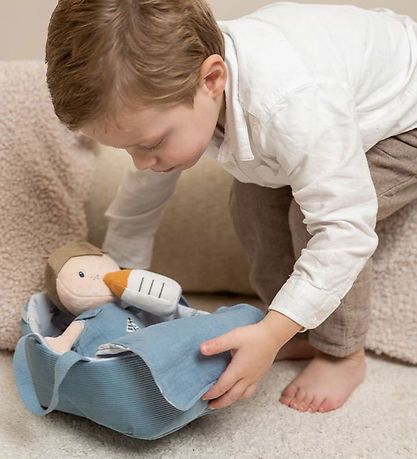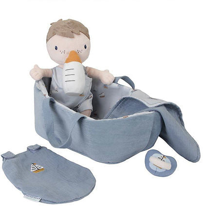 Meet little baby Jim.This sweet Little Dutch plush doll wants to be cuddled and carried around. Baby Jim will become friends with every little girl or boy. They can feed him with the bottle or calm him down with the dummy. They can change his nappy and tuck him in with a blanket. By looking after Jim, children learn to take up a caring role in a playful way