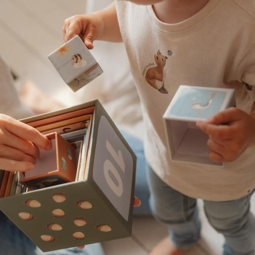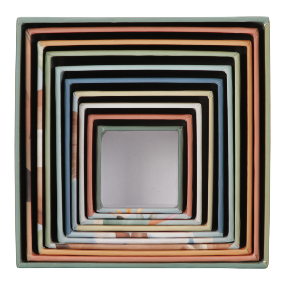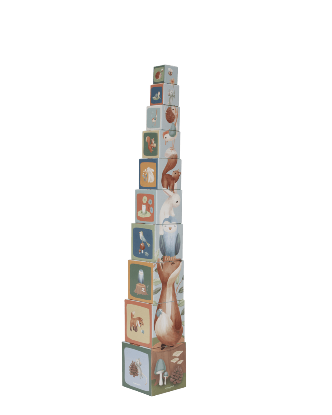 With these building blocks, children will playfully learn to count to 10. You can stack the blocks to build a tall tower, or put them on the floor horizontally. The little blocks can be placed inside the bigger ones, so they're easy to tidy. The blocks are made of sturdy cardboard. The smallest block measures 5 cm, and the biggest is 14 cm