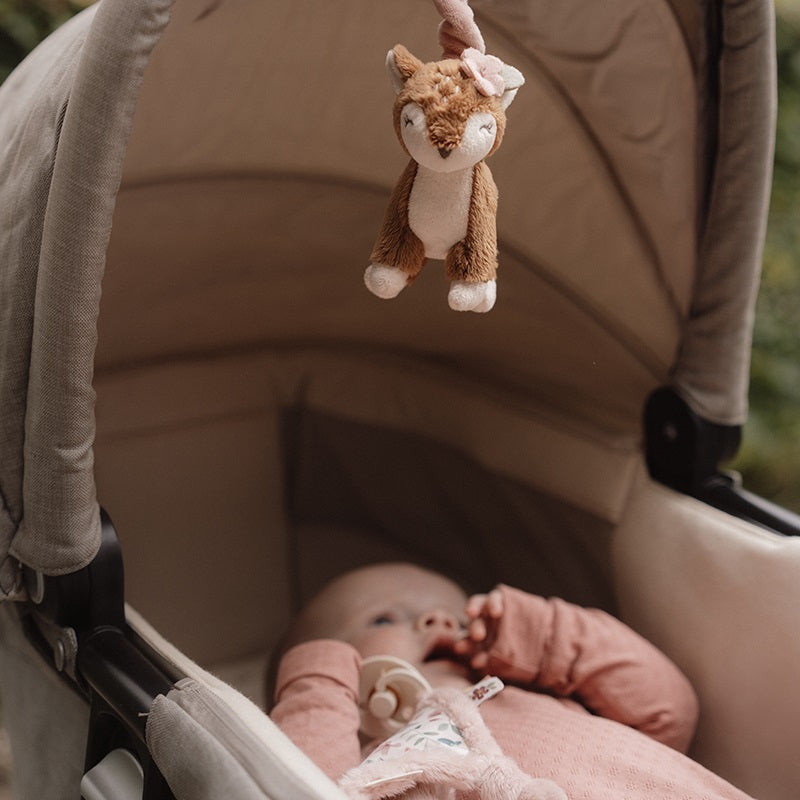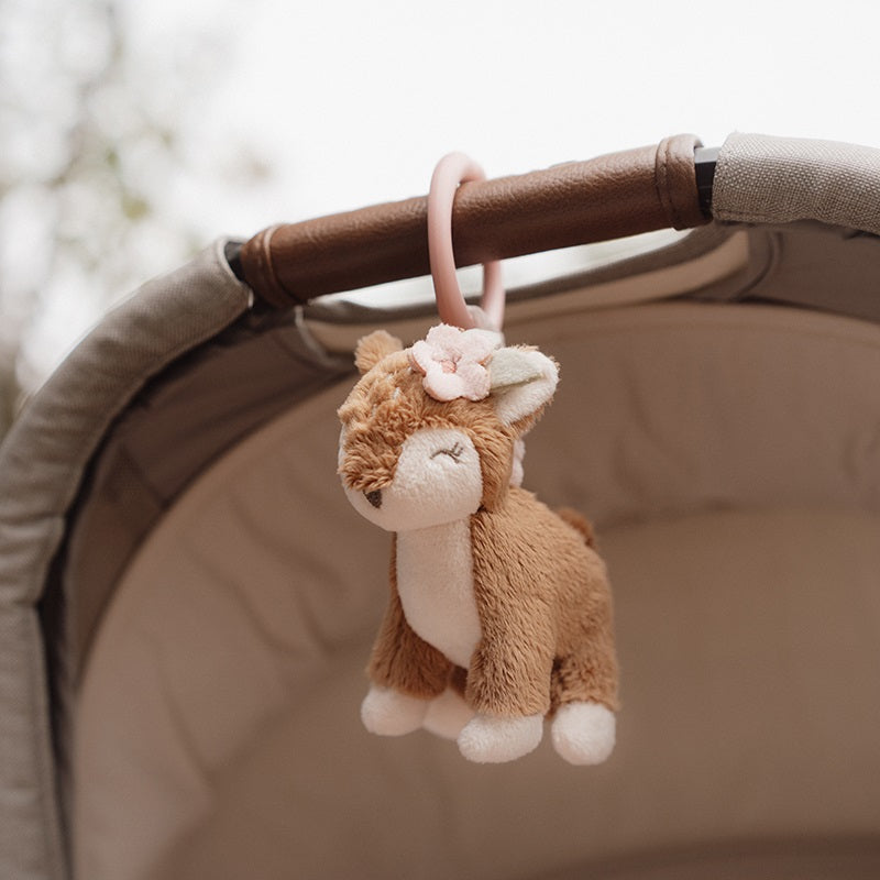 This pull-and-shake toy has the shape of a little deer. Give her a pull and she will start to shake. You can easily attach this toy to a car seat, crib or stroller. Made for little hands to grasp, it allows for endless entertainment at home and on the road