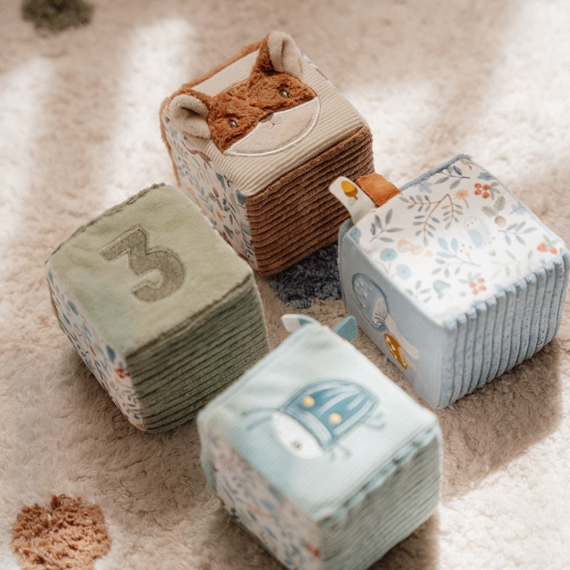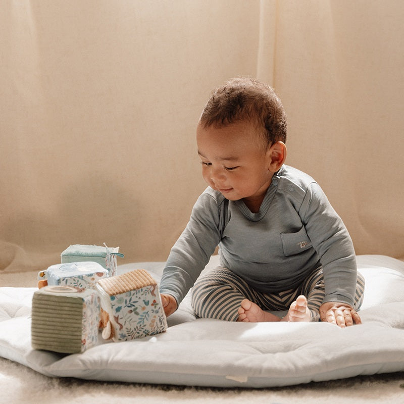 Ring, rattle, and roll! With varied sounds, textures, and features to explore, this fun set of soft activity blocks will keep your little one entertained. Plus, it stimulates hand-eye coordination. The set consists of four multi-sensory blocks, each one defined by soft colours and decorated with number. Baby hands will also discover a captivating labels, plush panels, and the mirror