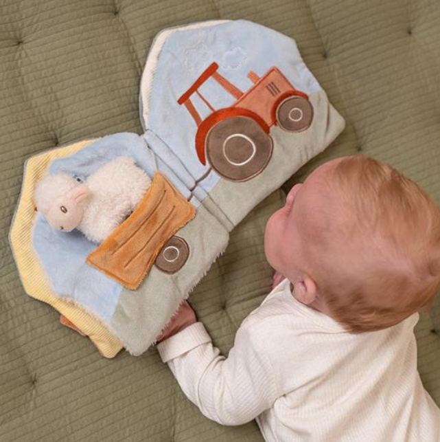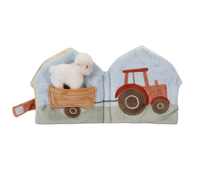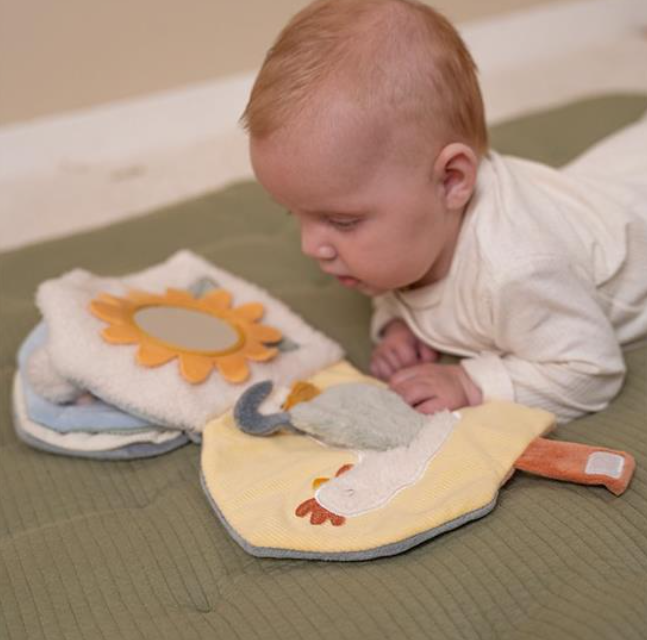 Babies never get bored with this colorful activity book of Little Farm in the shape of a barn. There is so much to discover with the various materials and activities, such as a mirror, rattle, and hidden toys. The soft book also has different labels to touch. This not only stimulates the senses but also helps develop hand-eye coordination.