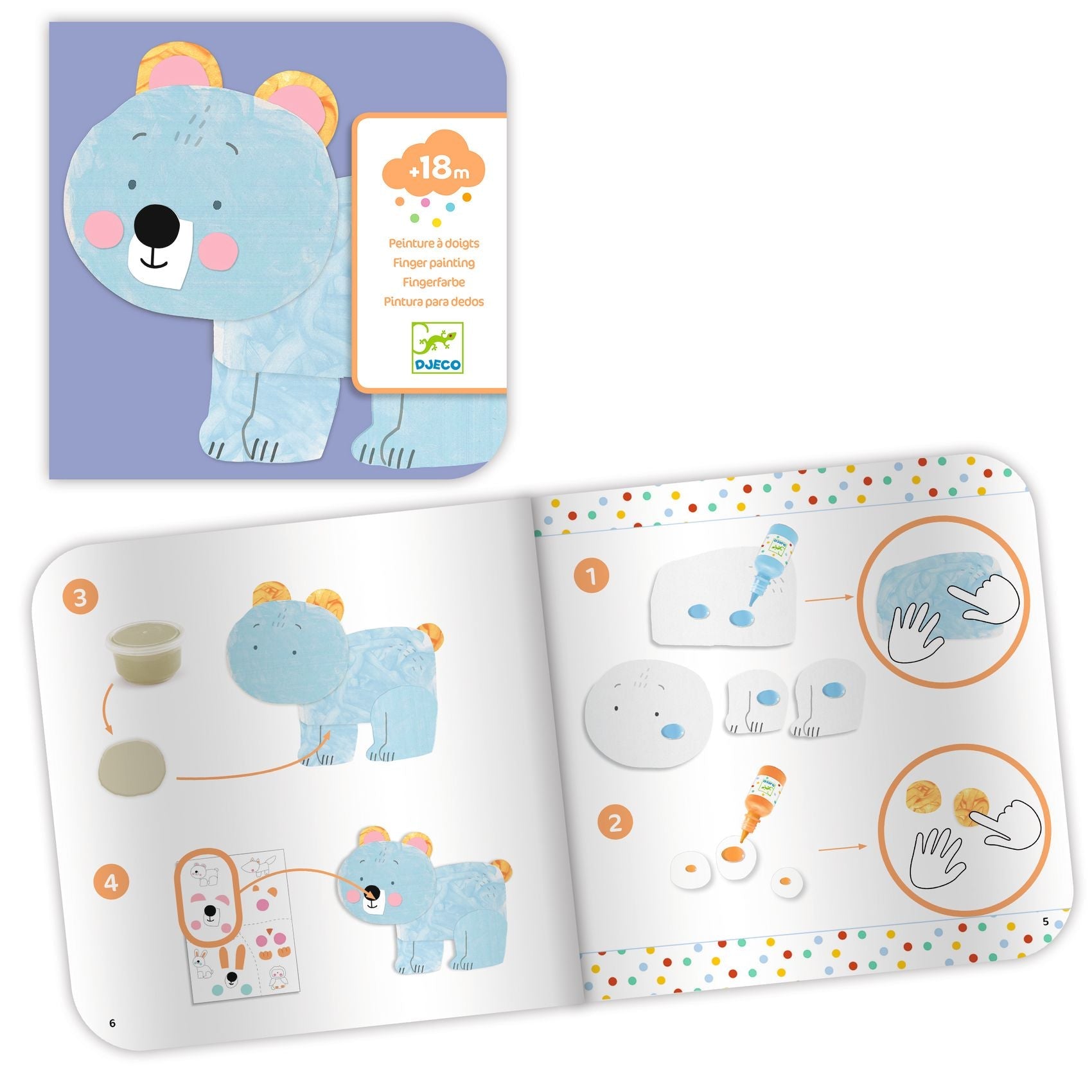 יצירה לקטנטנים, החל מגיל 18 חודשים,בעזרת מבוגר שמניח מעט צבע על צורה, הילד/ה מורח את הצבע על הצורה ,רק אז מרכיבים את צורת החיה ומדביקים עם המדבקות.יש בערכה 2 חיות מתוקות ליצור.