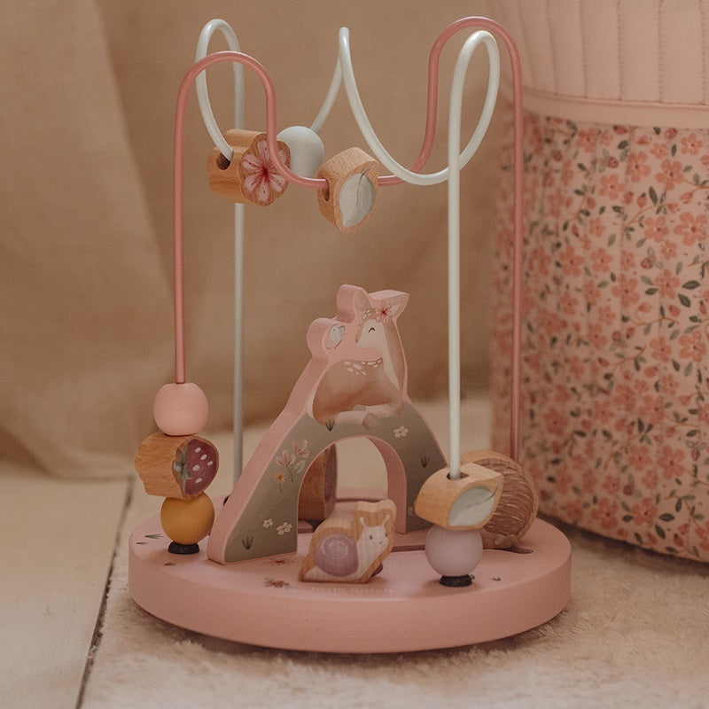 Guide the beads from left to right through the magical world of Fairy Garden. Along the way you will meet the lovely deer, hedgehog, ladybug, and little snail that live and play in the garden. Slide them from side to side to discover the blooming flowers, lush leaves, and juicy strawberries that adorn the garden. This wooden activity spiral provides an educational and enchanting experience for your little one