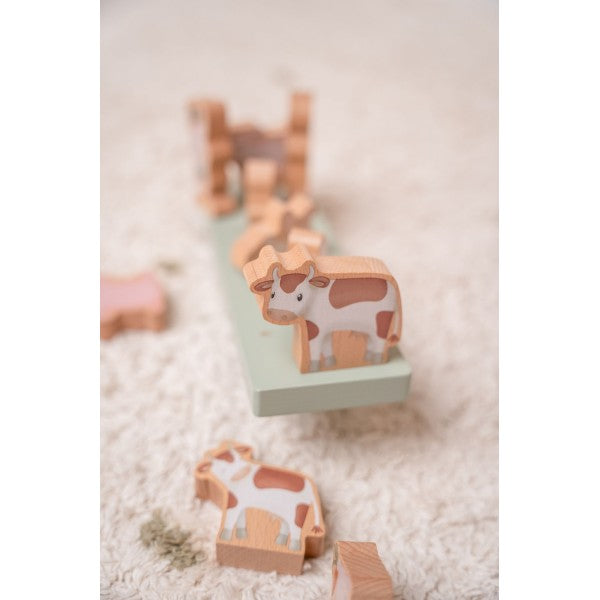 Turn over a card and place the figure that matches your card on the meadow. Be careful not to wobble the balance too much, or the figures will fall off! This balancing game is fun to play alone, but also with the whole family. Balancing improves your child's hand-eye coordination and fine motor skills. The game includes 11 round cards, 1 balance, various animals and Jim and Rosa