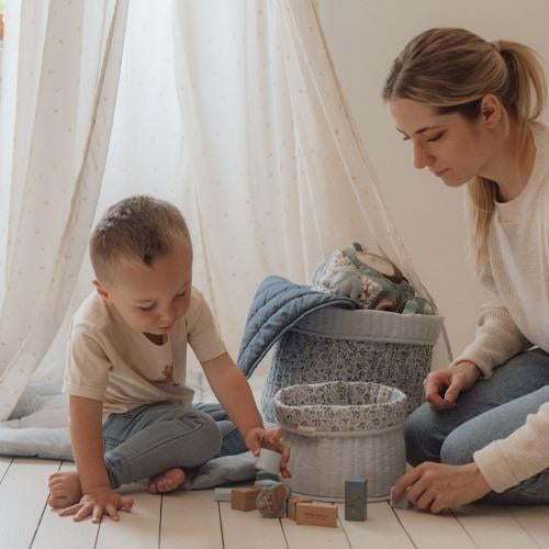 Stack the blocks one by one to craft a stunning forest adorned with leaves, berries, pine cones and insects, or a charming village where all the animals live and play. Practice hand-eye coordination as you carefully arrange each block to build your magical world. This bucket holds 50 wooden blocks featuring enchanting elements from the Forest Friends collection. When play time is over, the blocks can easily be stored in the bucket