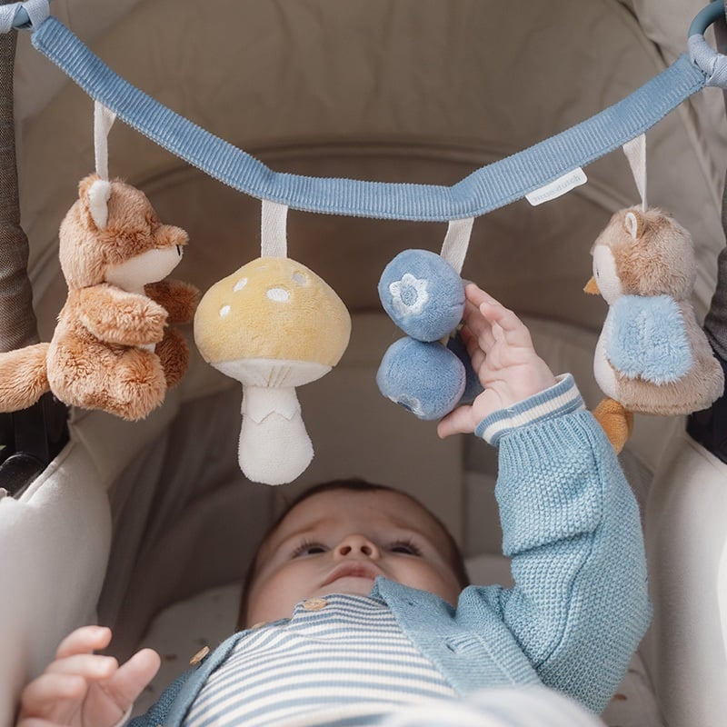 Rattle, squeak, crinkle – all sensory experience with this colourful Stroller Toy Chain. It will encourage the development of baby’s hand-eye coordination. Made for endless on-the-go entertainment, it features four different characters to look at and play with.  Easily attach the toy chain to everything from car seat to stroller