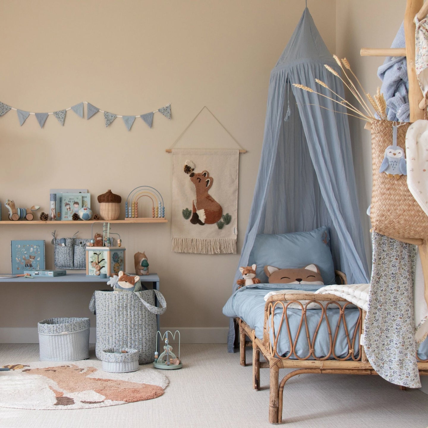 Bring a touch of the forest into the nursery with this cute knitted cushion of the sweet fox from the Forest Friends collection. This soft and cozy cushion is not only a comfortable accessory but also a stylish item to complete the room. The embroidered details give the cushion extra charm, and it is also washable - perfect for little adventurers! Made from organic cotton, so it's just as friendly for the planet as it is for your little one.