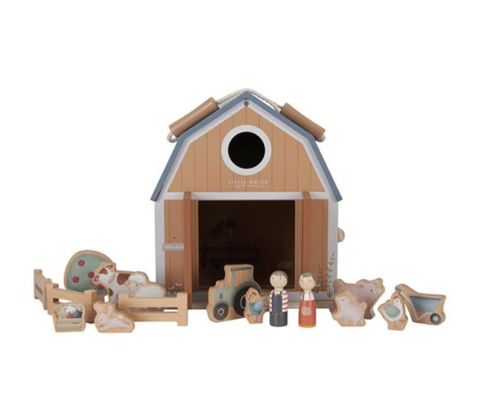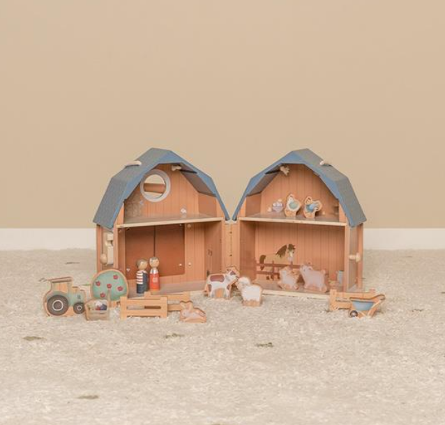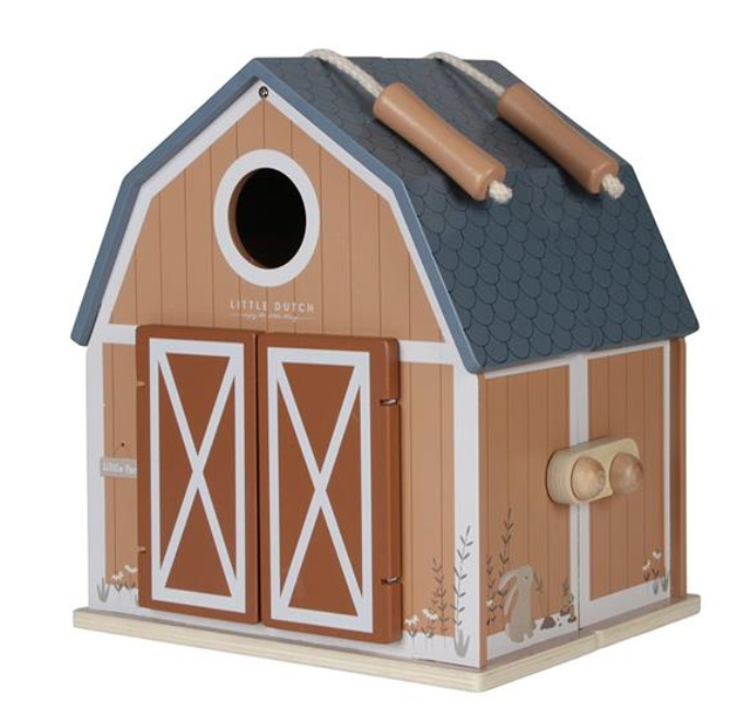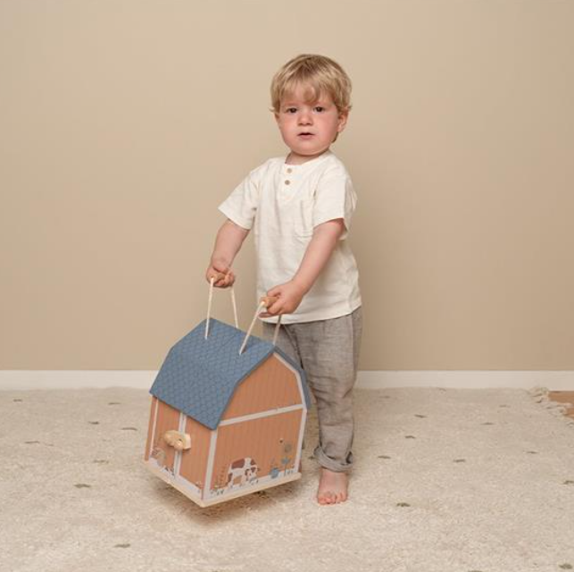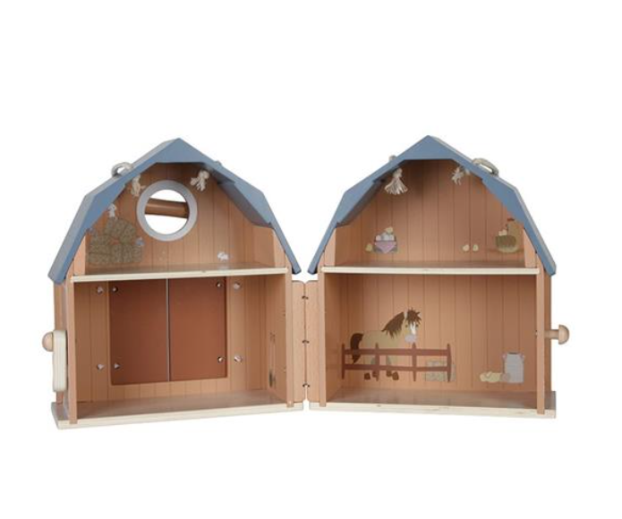 With this playhouse in the shape of a barn that stands on the farm, your little one will have so much fun! Open the barn and the animals will arrive. With all these wooden play figures, your child can create their own story, stimulating their imaginative thinking. And when playtime is over, simply store all the figures inside the playhouse, fold it back up, and tidy it away. WARNING: Not suitable for children under 3 years due to small parts. Choking hazard.