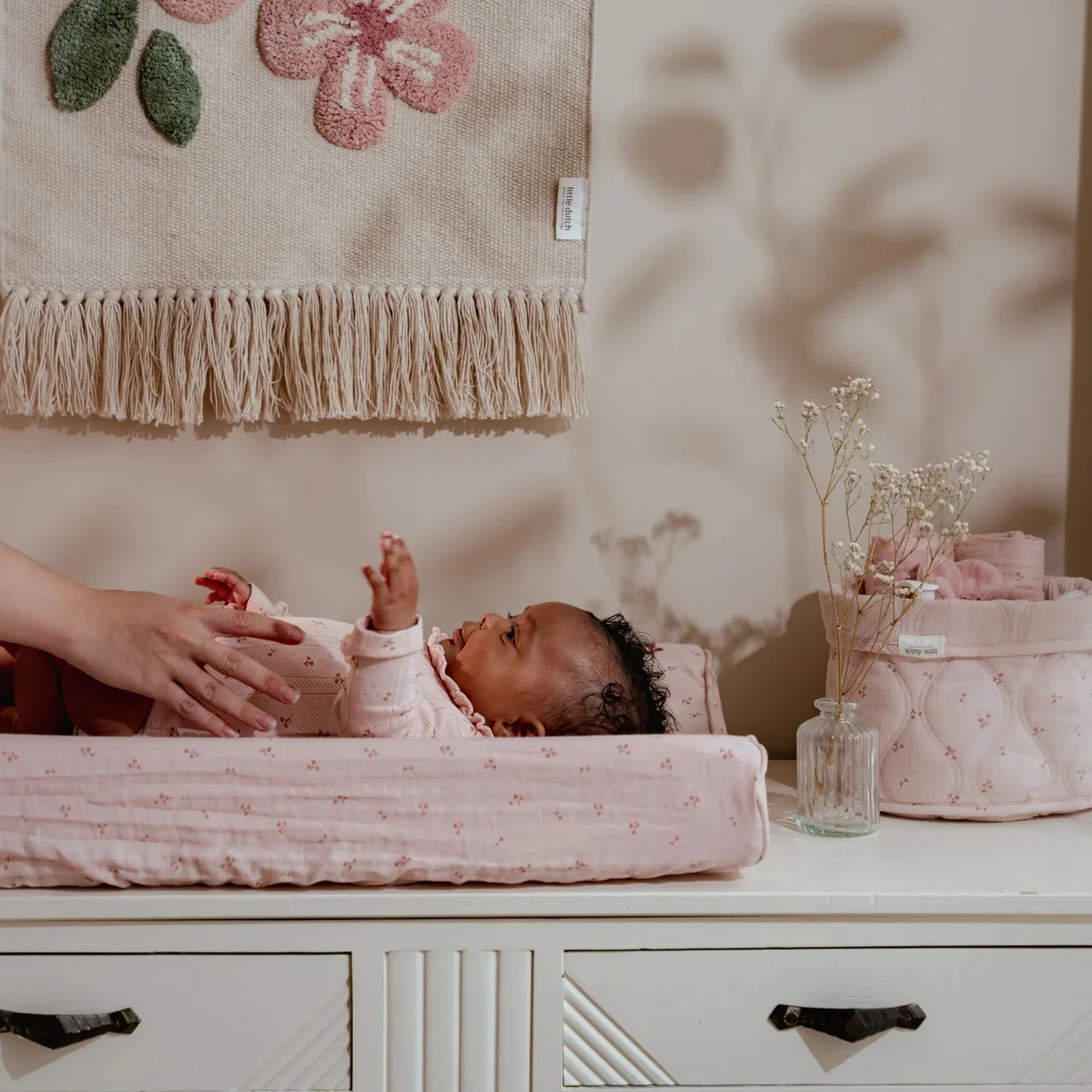 Stylish and practical solution for the changing table. With this basket you can keep diapers, tubes and bottles neatly organized and always within reach