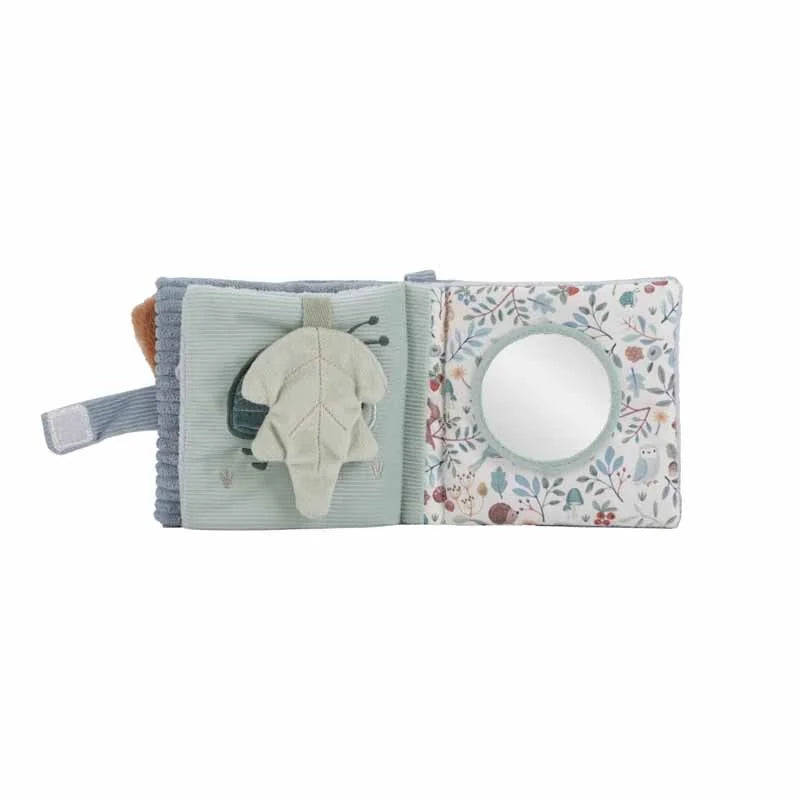 This touch and play stroller booklet featuring engaging labels, crinkle textures, and a mirror It is designed to captivate your child's senses page by page. Simply attach the loop to the stroller to keep it securely in place