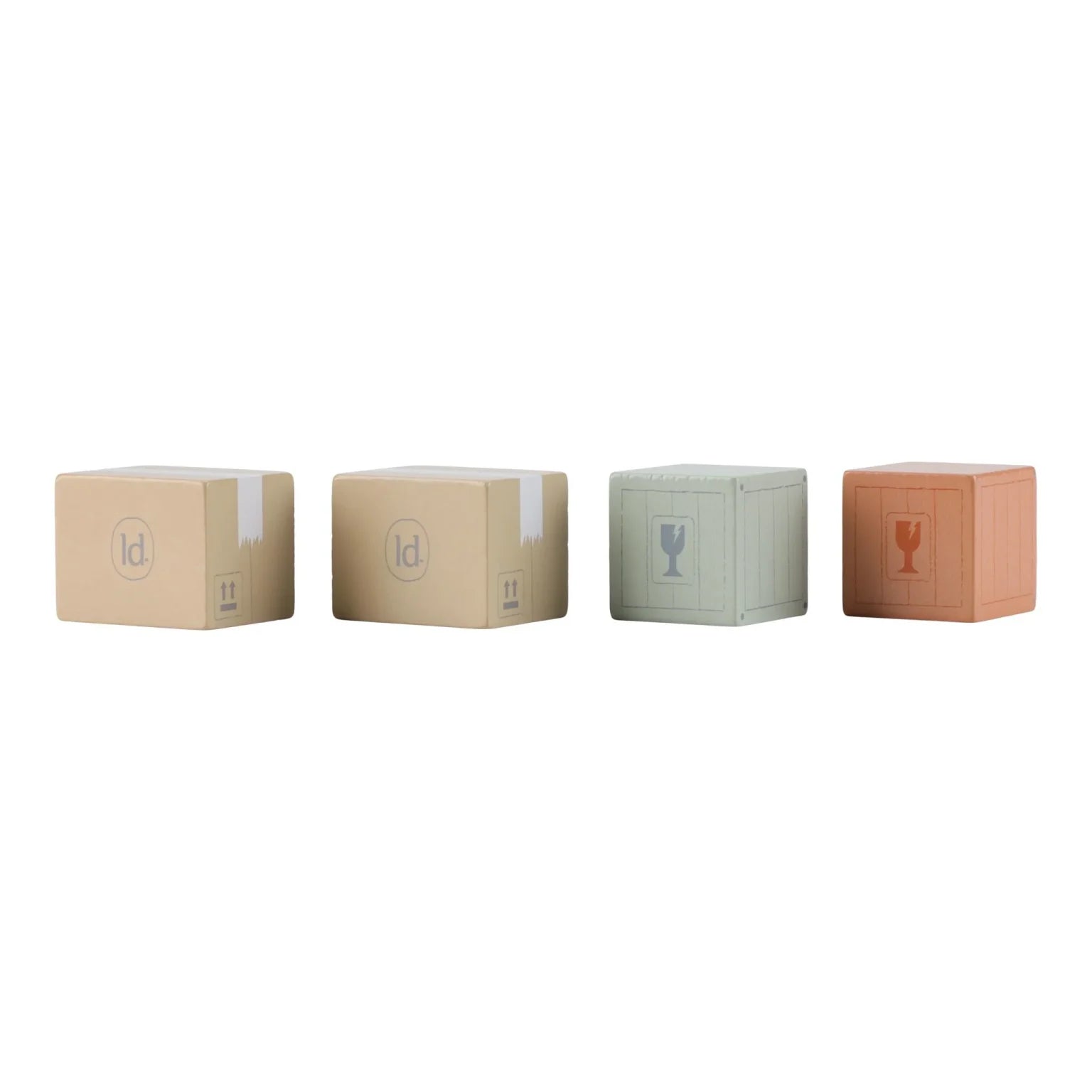 This wooden dump truck has a working tipping bed and comes with two truck drivers. Includes various loads such as logs, stones and wooden boxes. Drive to the construction site, tilt the bed and dump the load. This wooden truck perfectly matches the other construction vehicles