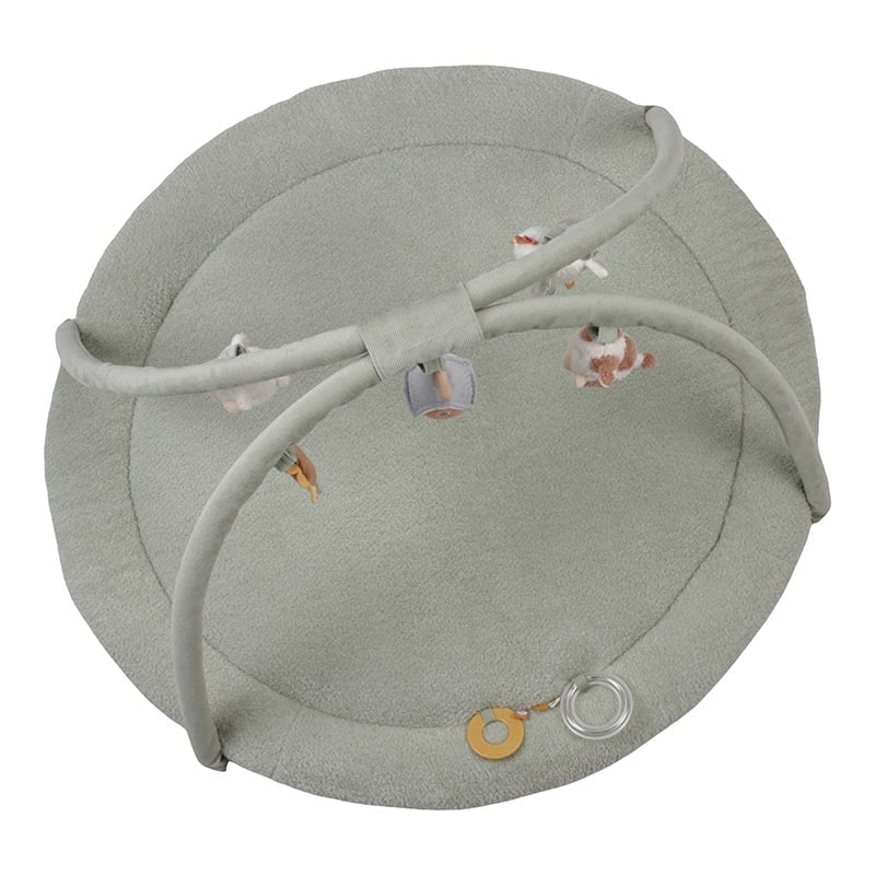 המזרן הירוק כולל שני קשתות גדולות עם 5 צעצועים רכים שונים. יש כל כך הרבה לראות, להרגיש ולשמוע. התרנגולת, הפרה, הכבשה, הפרח והמחסן יעזרו לקטנים לפתח מיומנויות חושיות ולעורר את הקואורדינציה בין היד לעין.