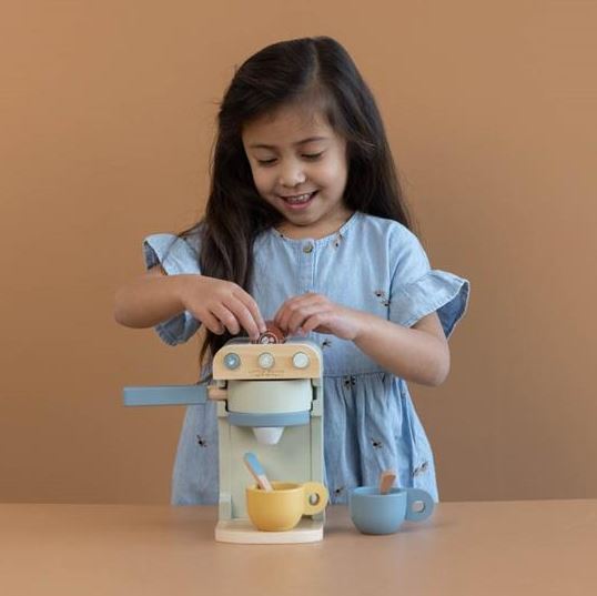 מכונת הקפה מעץ זו מגיעה עם שתי כוסות, שתי כפיות וחמישה קפסולות קפה שונות. הערכה הזו מצוינת למשחק דמיון ותחשוף את הבריסטה הקטן שבילד שלך.
