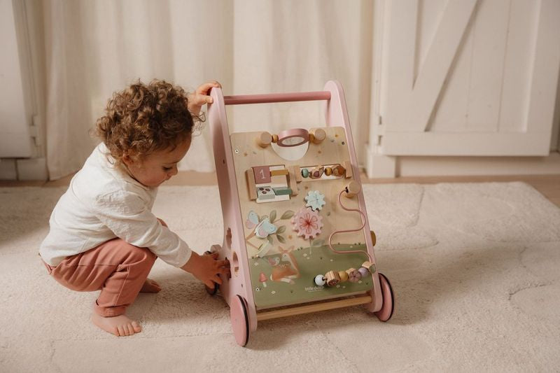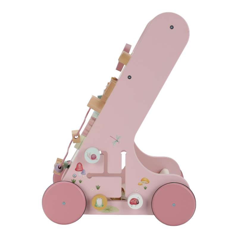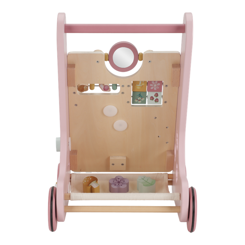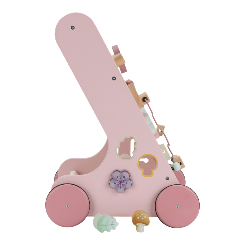 ללכת, לשחק וללמוד! הליכון פעילות מעץ זה מציע פעילויות מאתגרות שונות התומכות בפיתוח מיומנויות המוטוריות של ילדכם. ישנן 8 פעילויות לגלות ולשלוט בהן. עם העיצוב החזק שלו, ההליכון מתאים לילדים מגיל 12 חודשים ומעלה שמוכנים לצעדים הראשונים שלהם. גלגלי הגומי לא ישאירו סימנים על הרצפה שלכם ובטוחים לשימוש בתוך הבית. דרושה הרכבה על ידי מבוגר