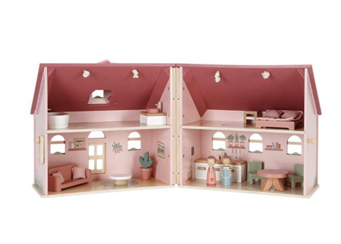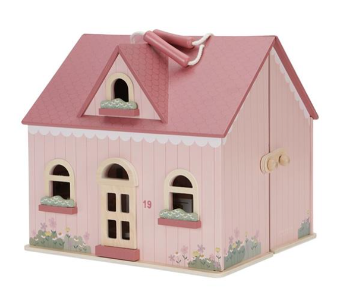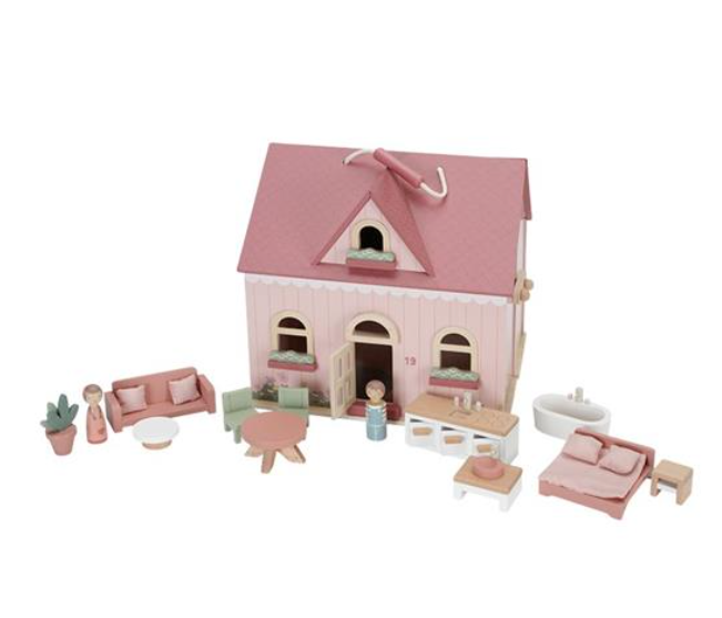 בית הבובות הנייד מעץ של Little Dutch הוא בית ורוד חמוד ונעים עם פרטים יפים. הבית כולל סלון ומטבח בקומה התחתונה, וחדר שינה וחדר אמבטיה בקומה העליונה. עם הסגירה העץית, בית הבובות נפתח ונסגר בקלות, ובזכות הידית, קל לקחת אותו לכל מקום. הריהוט כלול, אך יש גם ערכות הרחבה נוספות זמינות לקישוט נוסף של הבית. בית הבובות הזה מושלם לילדים שאוהבים לשחק ולדמיין עם העולם הקטן שלהם. אזהרה: לא מתאים לילדים מתחת לגיל 3 בגלל חלקים קטנים. סכנת חנק.